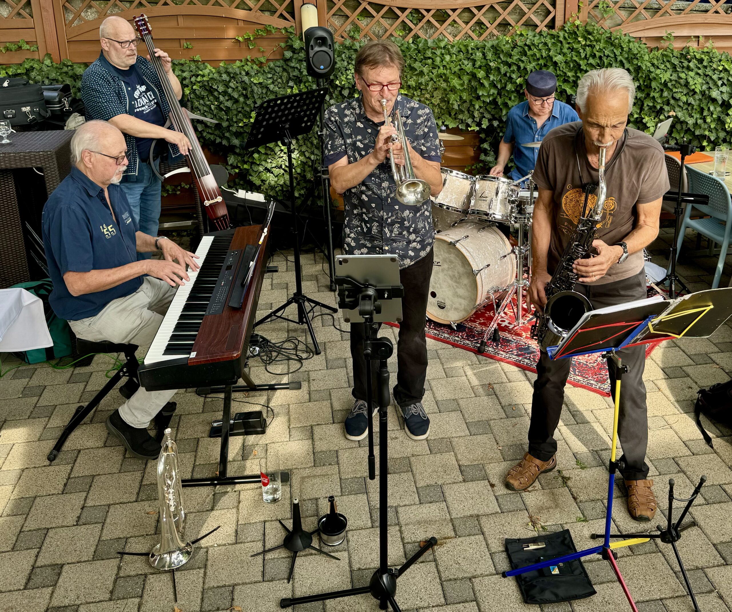 Wir sind eine Gruppe von erfahrenen Musikern, die sich schon seit vielen Jahren kennen und eine gemeinsame Leidenschaft für Jazz teilen. Unsere Begeisterung für die Musik und die Freude am Zusammenspiel treiben uns an, regelmässig zusammen zu proben und unser Jazz-Repertoire laufend zu erweitern. Wir spielen Stücke aus den Bereichen Swing, Bebop, Latin und Funk. Nebst Tunes von bekannten und weniger bekannten Jazzgrössen spielen wir auch stilgerechte Eigenkompositionen.